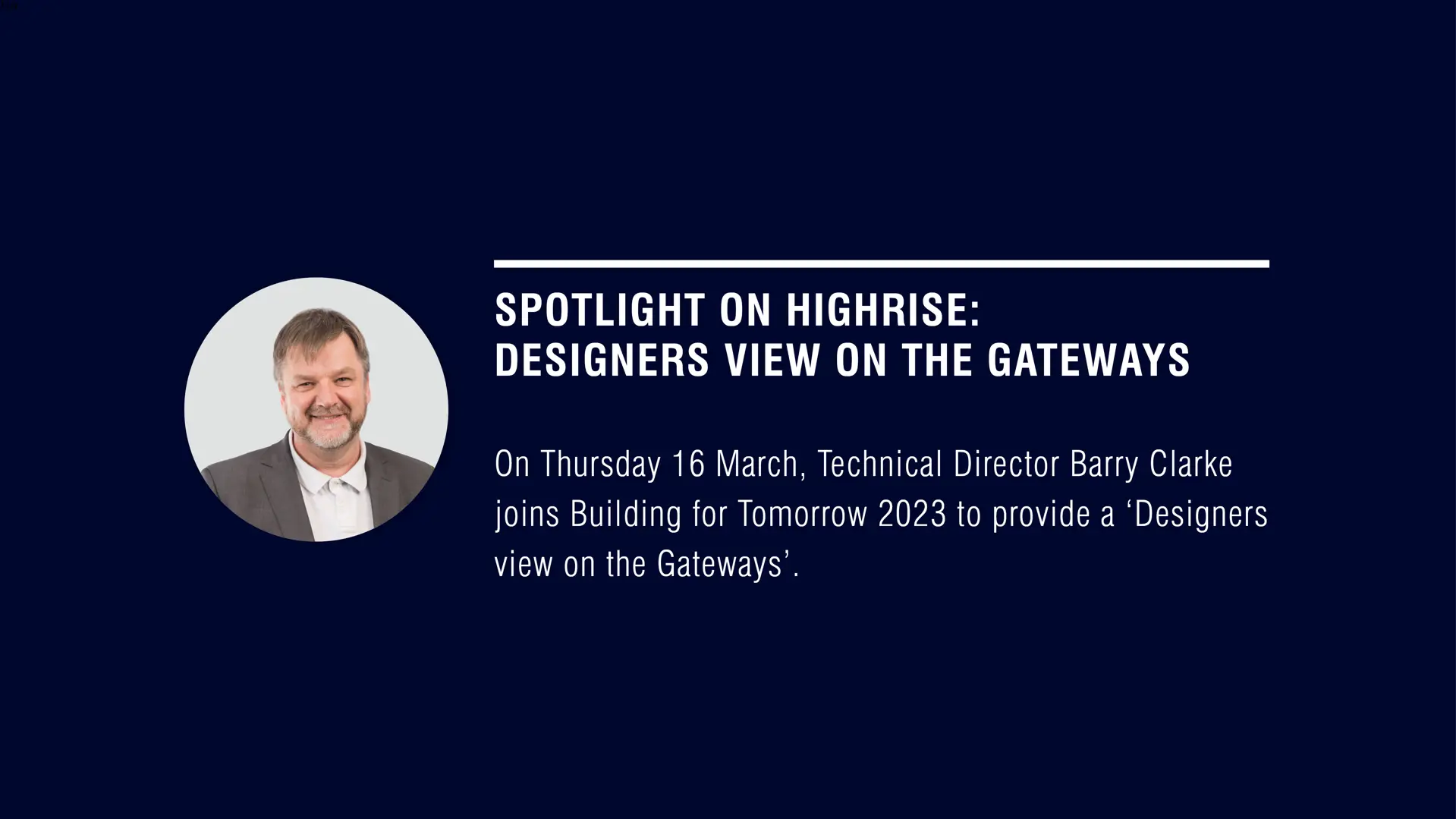 On Thursday 16 March, Technical Director Barry Clarke joins Building for Tomorrow 2023 to provide a ‘Designers view on the Gateways’.