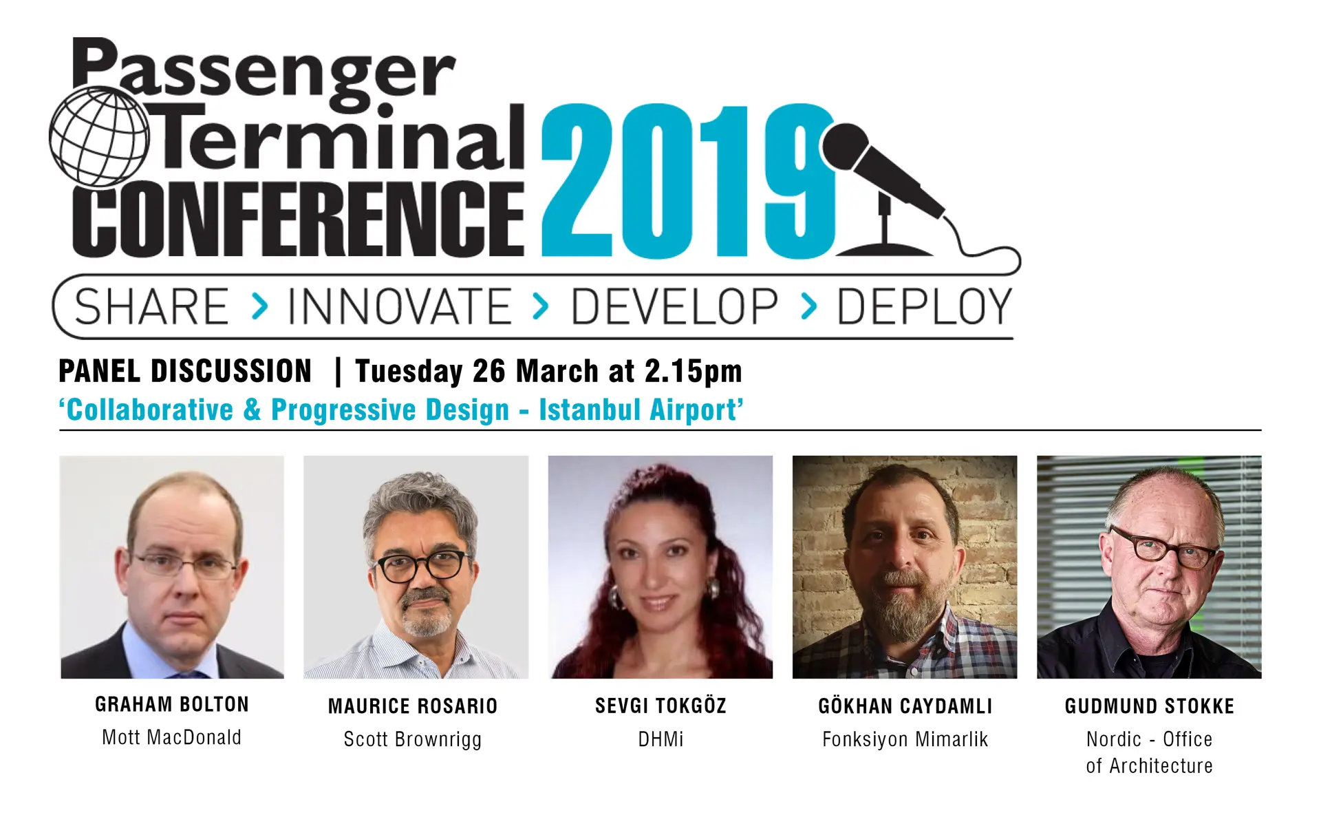The panel discussion which took place on Tuesday 26 March at 2.15pm cast the spotlight on the newly opened Istanbul Airport. Chaired by Graham Bolton from Mott MacDonald and Vice Chair of the British Aviation Group, the panel comprised of Maurice Rosario, Director at Scott Brownrigg, Sevgi Tokgoz, Project and Control Supervisor at DHMİ (General Directorate of State Airports Authority), Gudmund Stokke, Principal Partner at Nordic - Office of Architecture and Gorkhan Caydamlı, Partner at Fonksiyon Mimarlik.