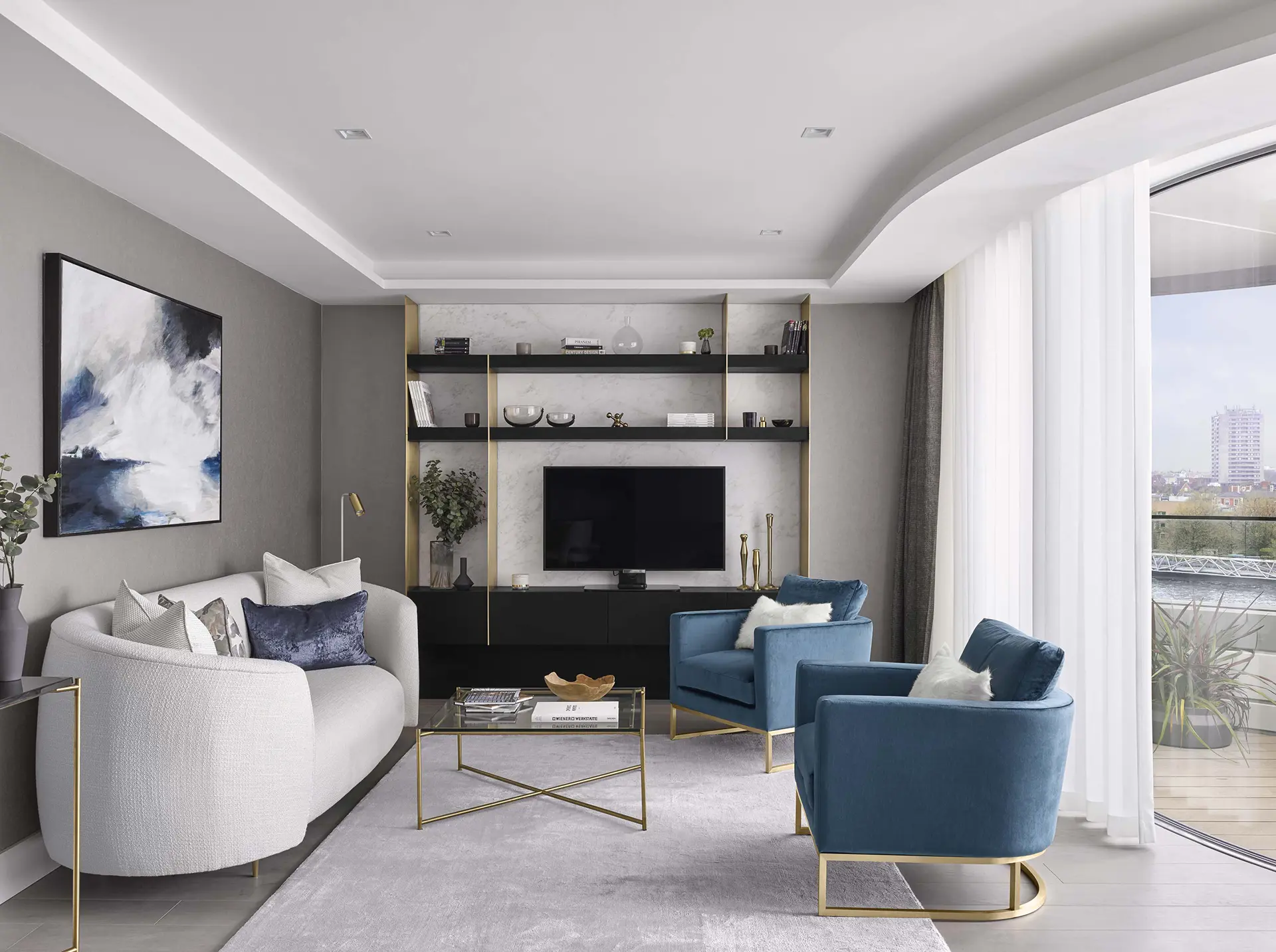 The Corniche is an iconic new development by St James and contributes to the regeneration of the Nine Elms development zone in London, representing the largest urban initiative of its kind in Europe. Situated on the south bank of the River Thames along the Albert Embankment, this signature Norman Foster building has a striking curvilinear form with an elegant flow of curved gardens and detailing which echo that of the river below.