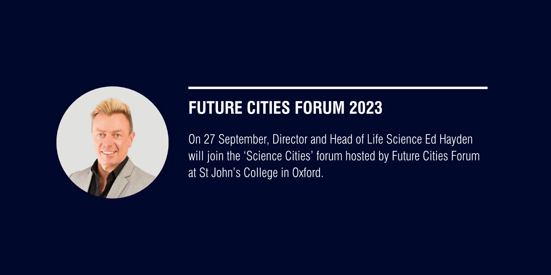 On Wednesday 27 September, Director Ed Hayden will join the 'Science Cities' forum, hosted by Future Cities Forum at St John's College, Oxford.