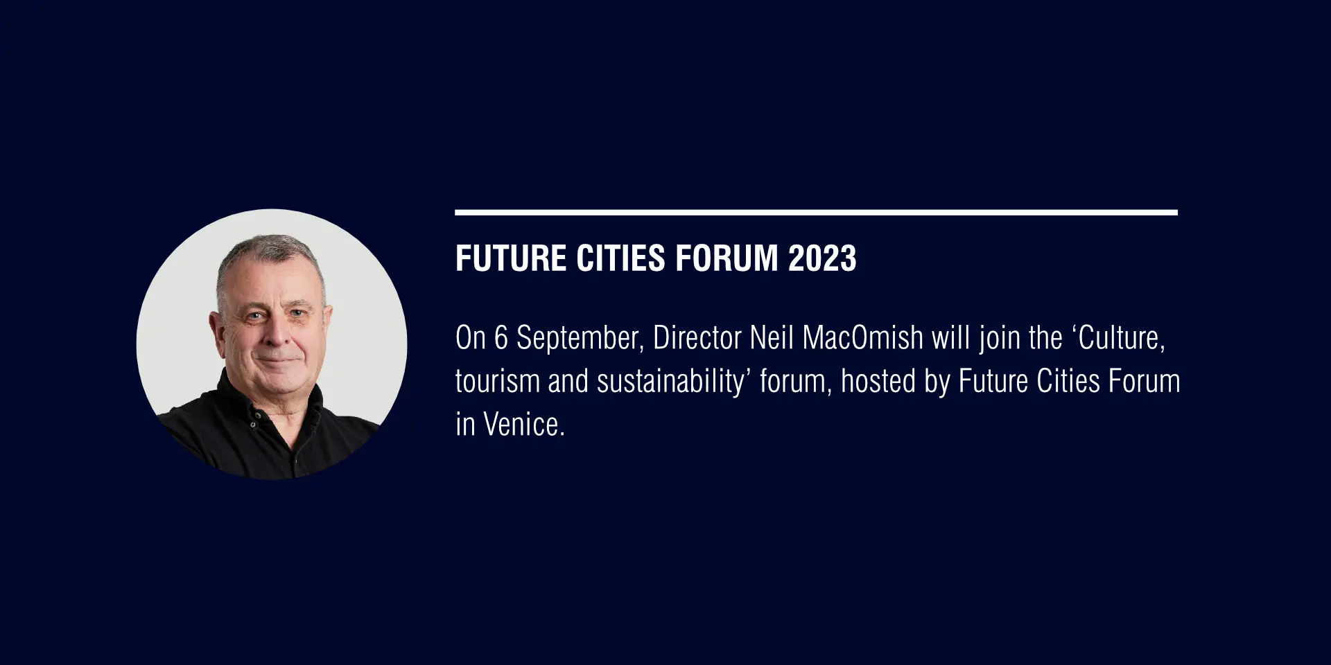 On Wednesday 6 September, Director Neil MacOmish will join the 'Culture, tourism and sustainability' forum, hosted by Future Cities Forum in Venice.