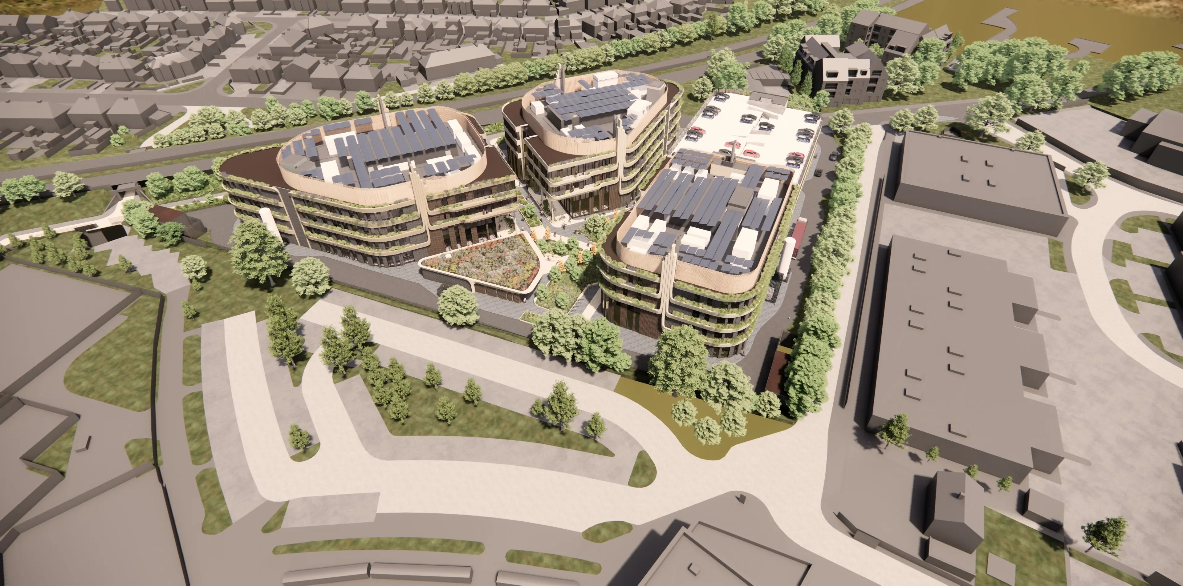 Three new state-of-the-art buildings are designed to suit a range of tenants and provide flexibility in occupancy, with 55% CL2 laboratory and 45% office space to support cutting-edge research and collaboration. Each building is carefully positioned to buffer noise and pollution from an adjacent A road, minimise visual impact to the surroundings, and encourage permeability across the site.