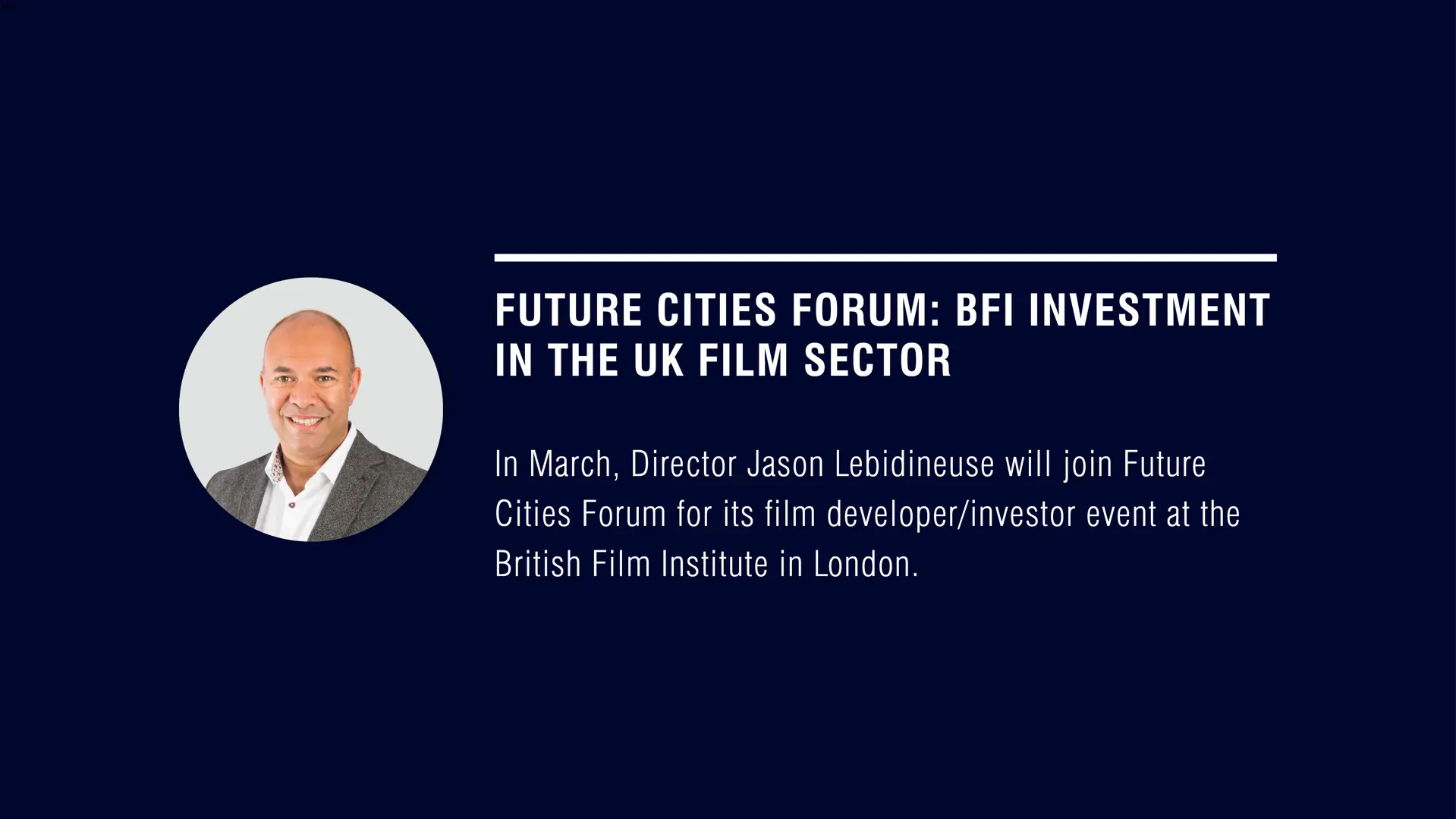 In March, Director Jason Lebidineuse will join Future Cities Forum for its film developer/investor event at the British Film Institute in London.