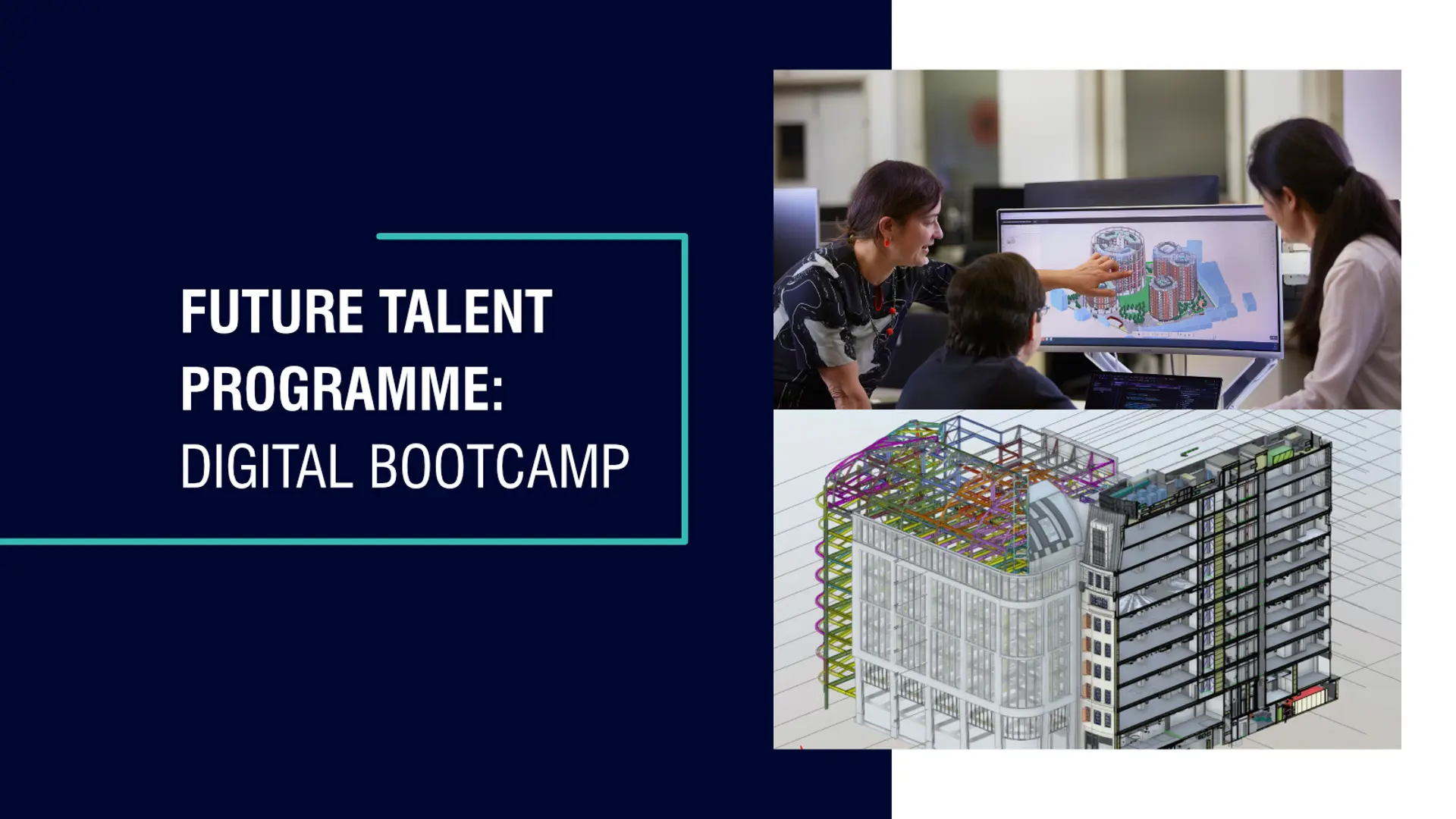 We have launched the inaugural Future Talent ‘Digital Bootcamp’, providing undergraduate students of architecture the opportunity to develop a deeper understanding of the digital journey and how to apply digital skills in practice. The initiative is part of our wider Future Talent Programme.