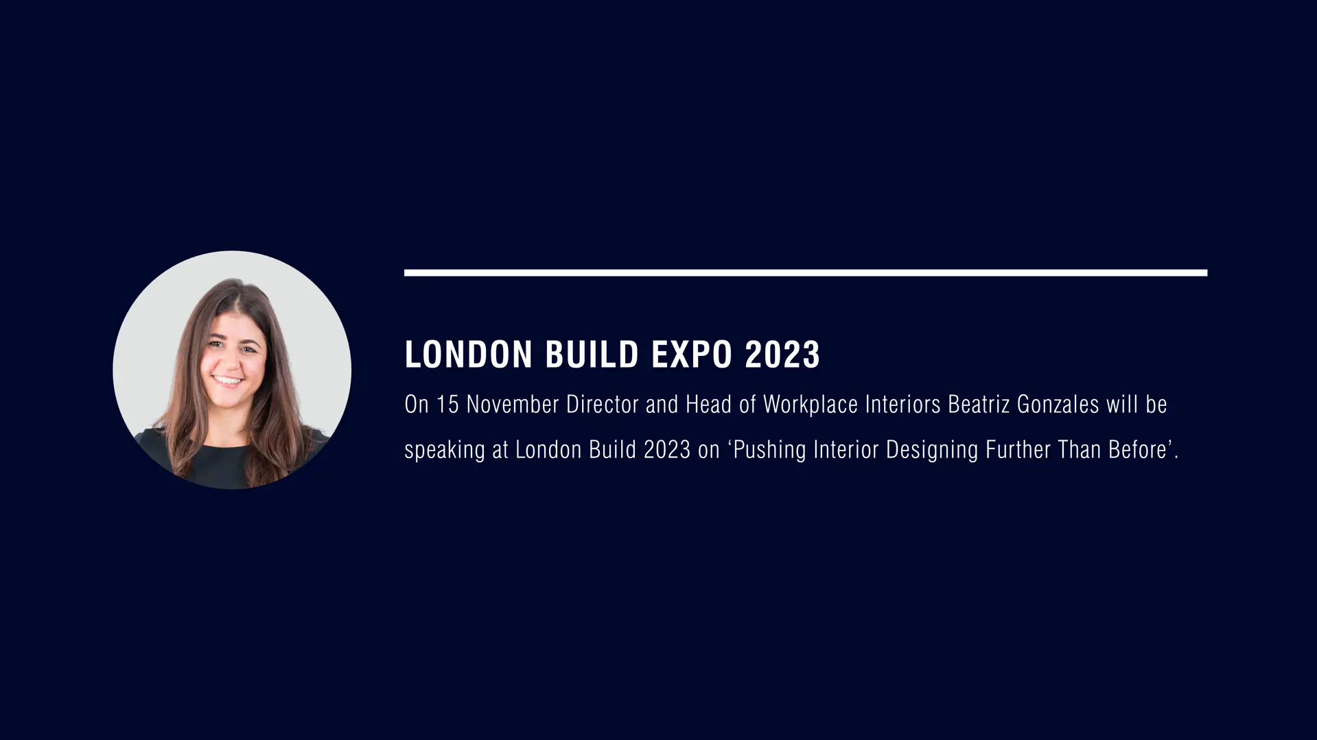Director and Head of Workplace Interiors Beatriz Gonzalez will be speaking at London Build 2023 on ‘Pushing Interior Design Further Than Before’.