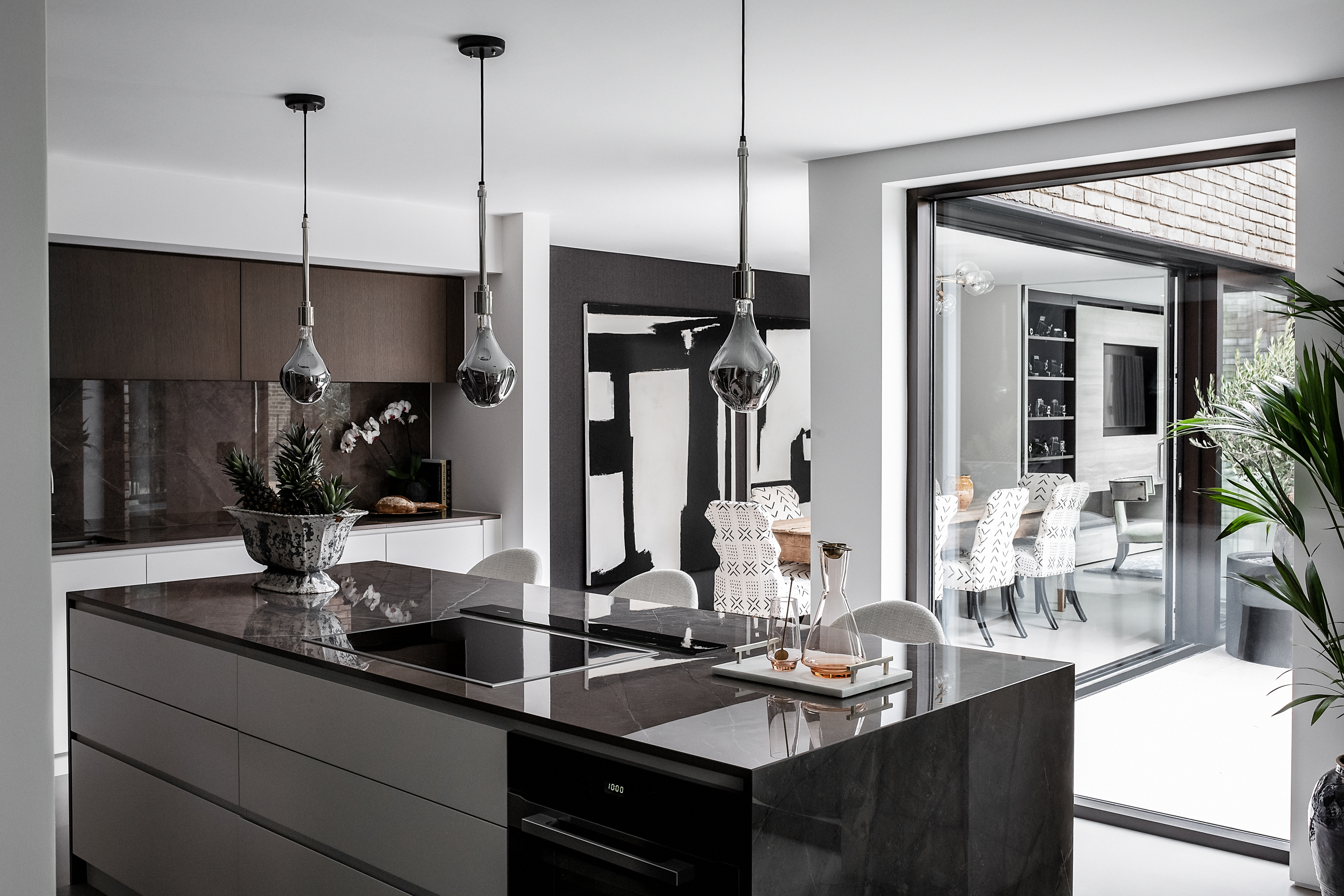 Designed to bring the outside in, the courtyard is a central part linking exterior and interior. On the ground floor the main living space, kitchen and dining area wraps around and connects with the courtyard via full height sliding and bi-fold doors. The basement accommodates a media, games and guest bedroom. Two further bedrooms and a master suite are located on upper floors. A sense of privacy and ambient light is achieved through a series of roof lights that highlight, and capture the essence of our contemporary interior design concept and fit out. Luxurious furnishings and home styling by designer Andrew Martin complement the design.