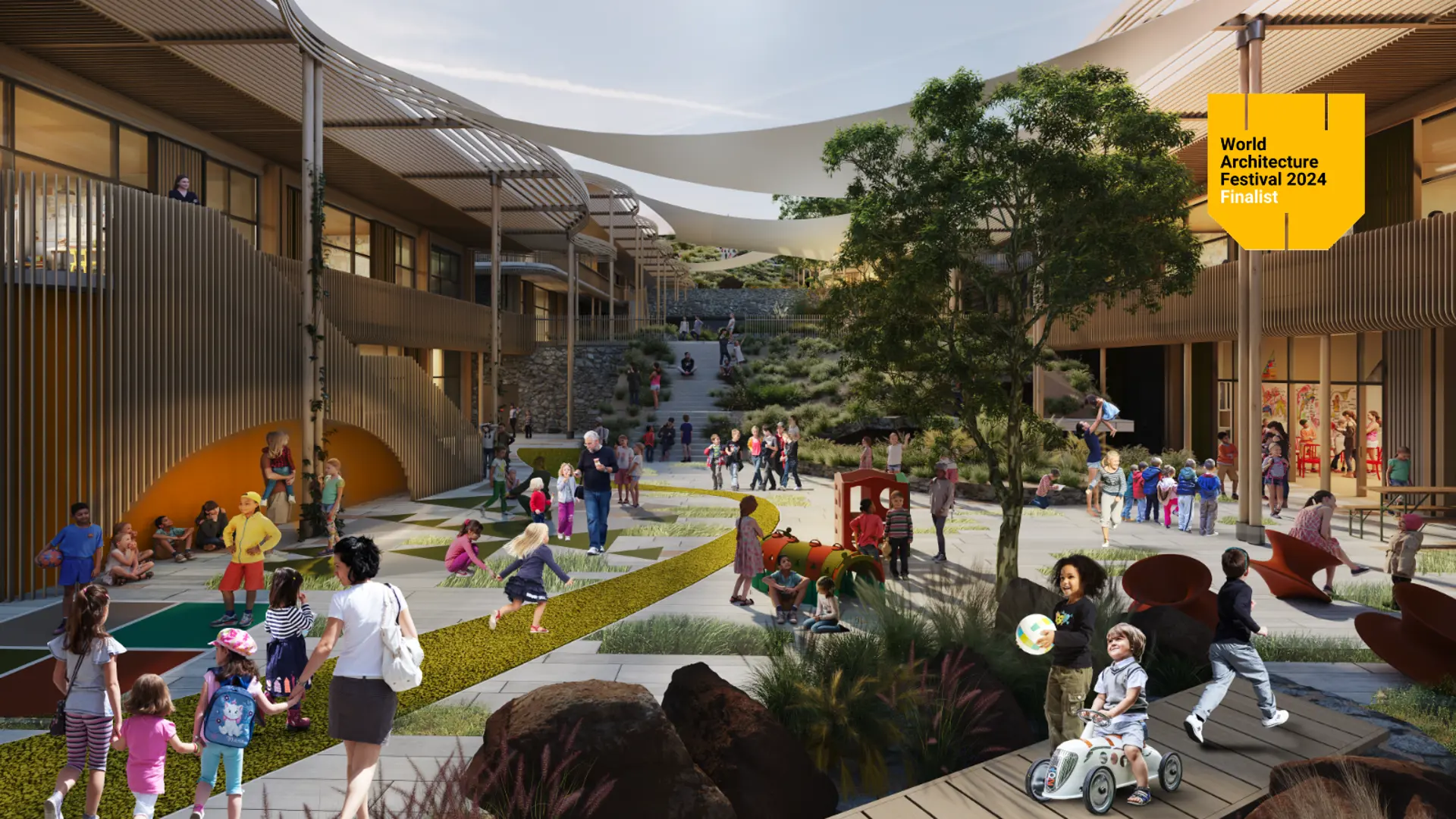 "The Island Private School provided an inspiring brief for a learning environment that nurtured global citizens with real connections to the natural world- the design responds to the diverse needs of the school community, and its stunning hillside site, to create a unique education hub at the heart of a new neighbourhood"