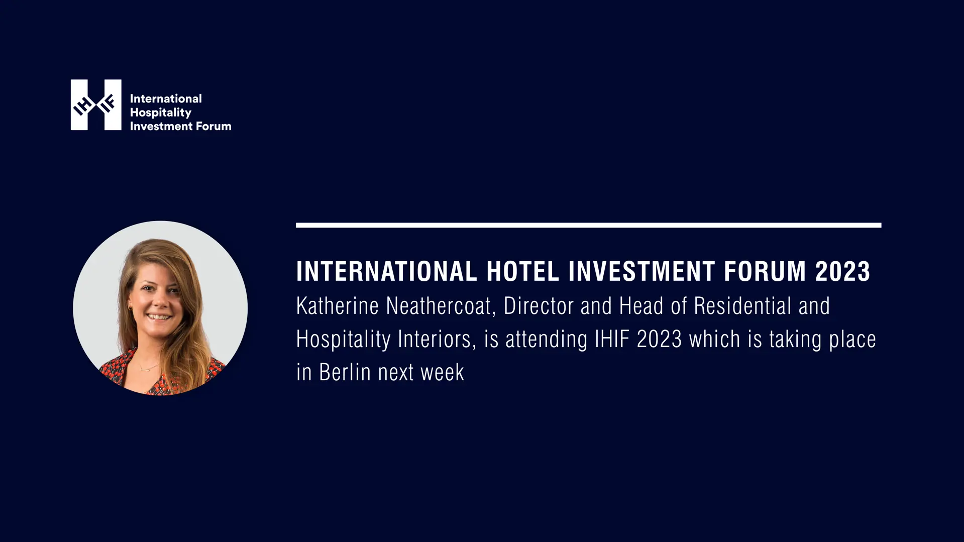 Katherine Neathercoat, Director and Head of Residential and Hospitality Interiors, is attending the International Hotel Investment Forum (IHIF) 2023 which is taking place in Berlin next week.