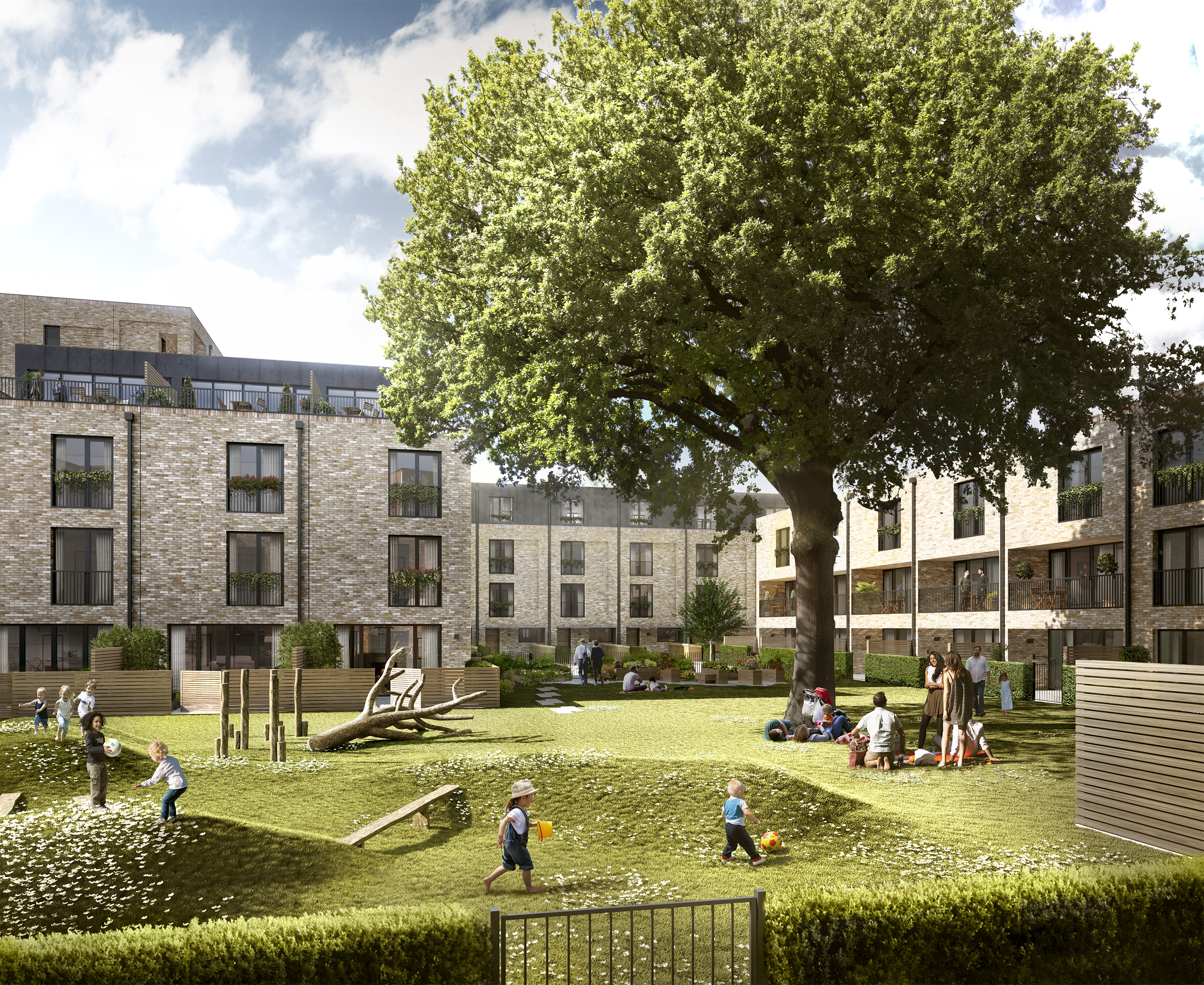 Our street and space strategy has allowed more homes to be created than had originally been anticipated. This arrangement has also allowed a historic oak tree planted by Capability Brown to be retained as the central feature of the new open space. A programme to achieve a sustainable residential community has also been developed with the client team.
