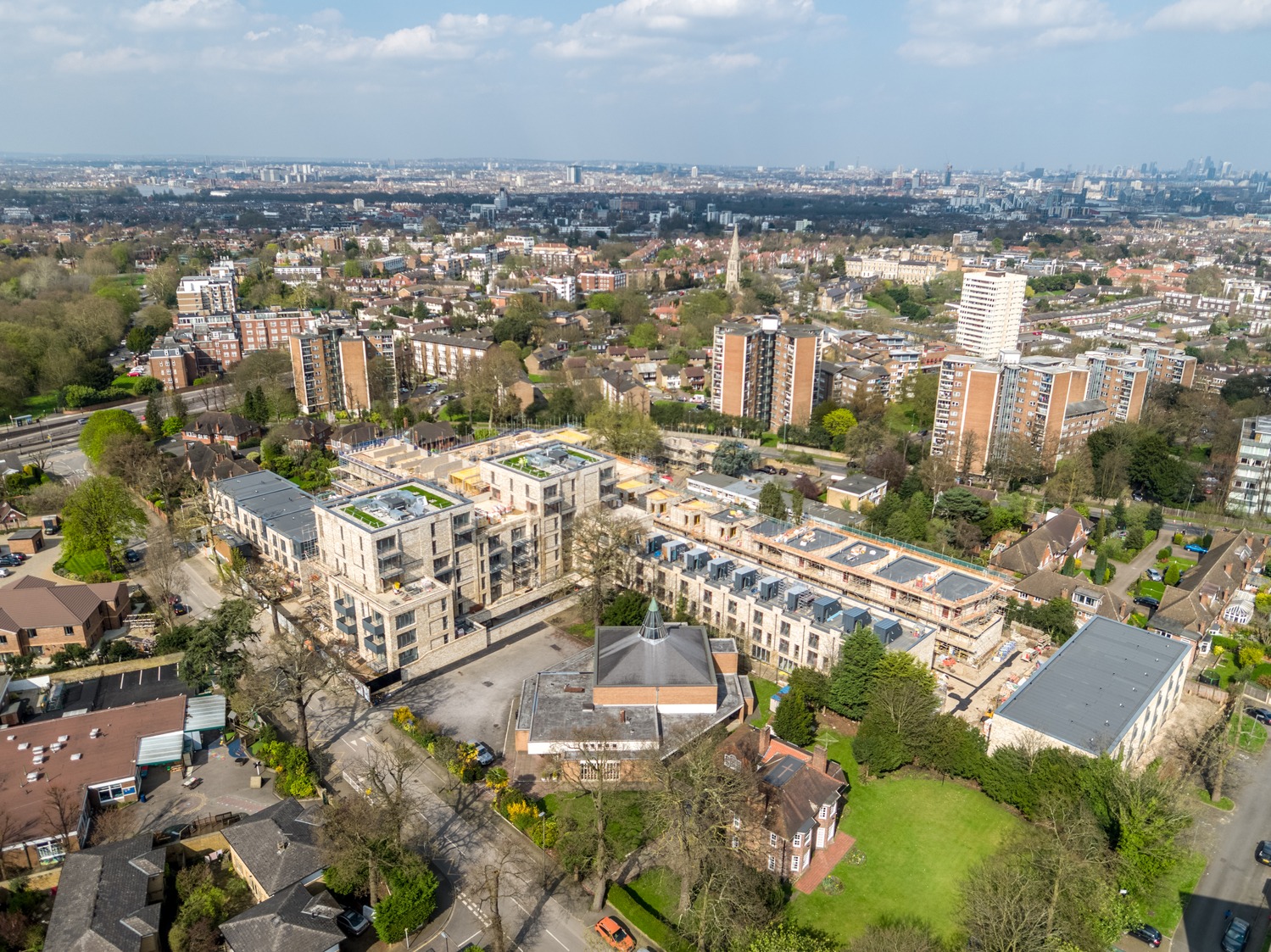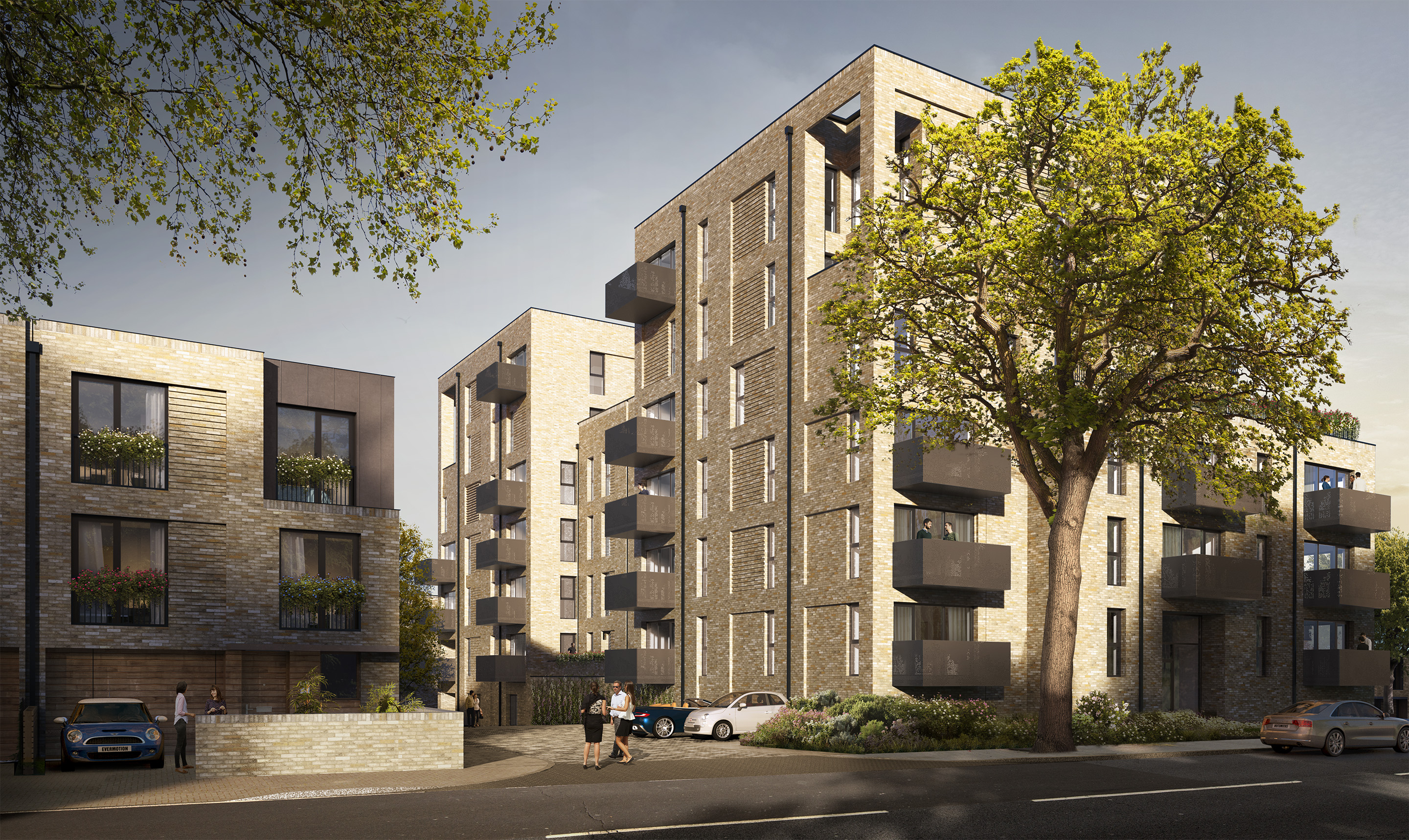 The site is nestled within a residential context, with an existing church located adjacent. Our concept has created a new public realm of streets and spaces around which new homes can be placed. The homes are Mews-type or Townhouse-type according to their situation. An apartment building provides a focal point at the entrance.