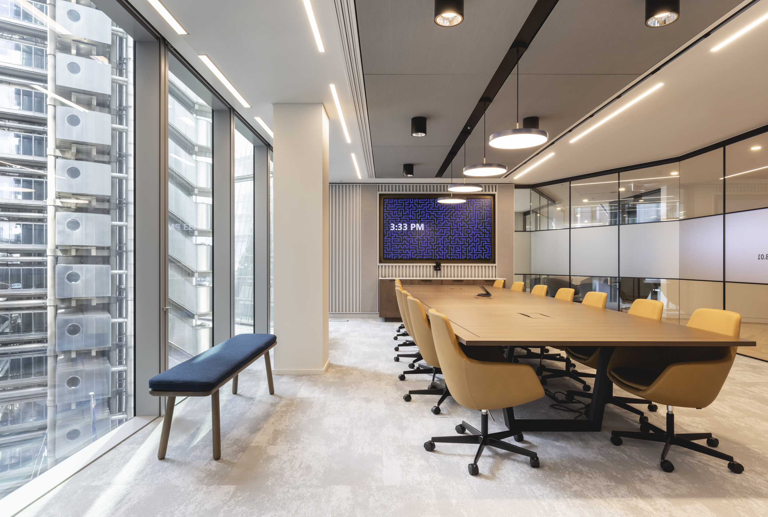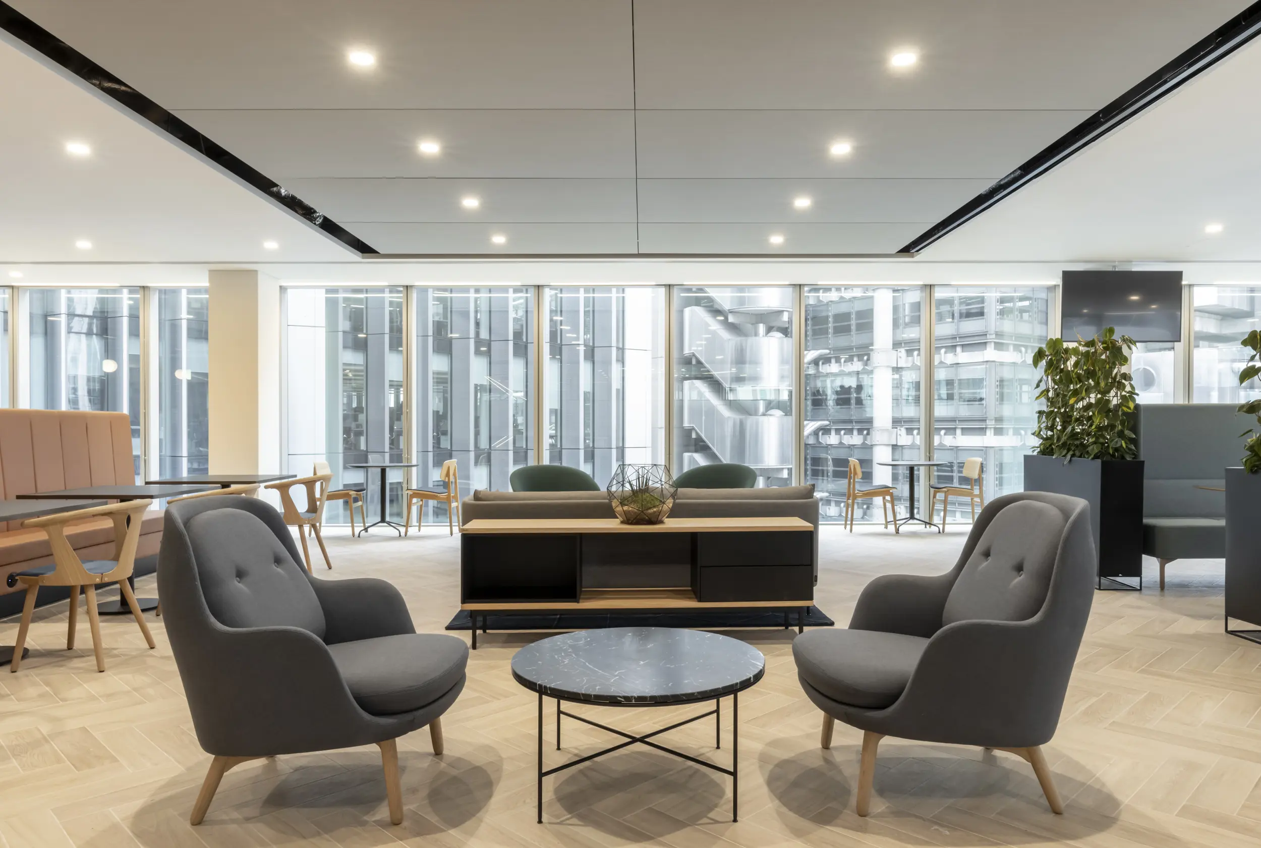 The move coincides with Chaucer’s decision to rebrand, enabling them to roll out their new brand identity across the office. Chaucer wanted to pay homage to their parent company, China Re Group, by incorporating Chinese architecture into the design. The spatial arrangement mimics the Chinese Hutong concept with ‘streets’ convening in a central social area such as the employee café, while design craftsmanship and joinery echoes the British market place.