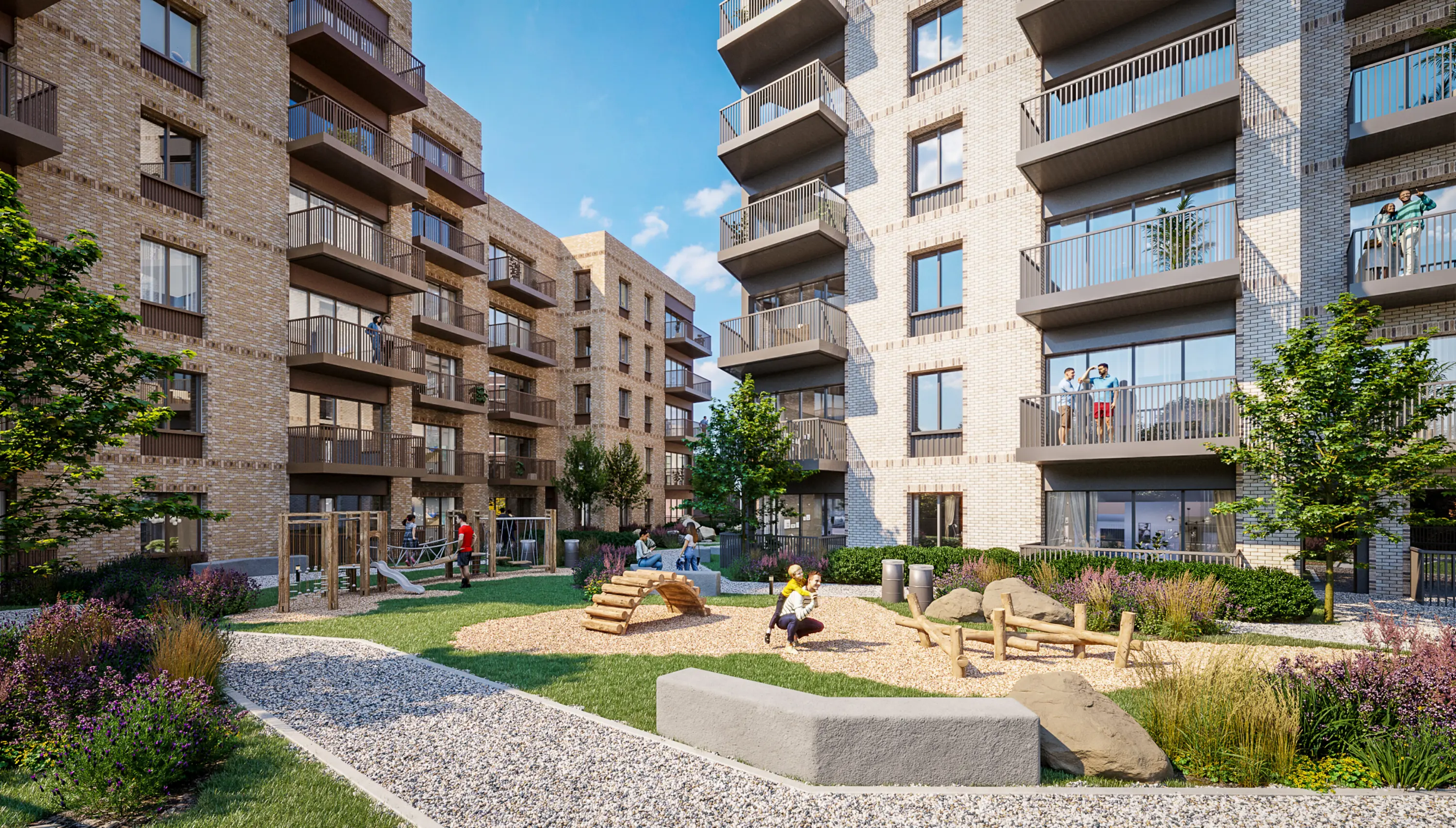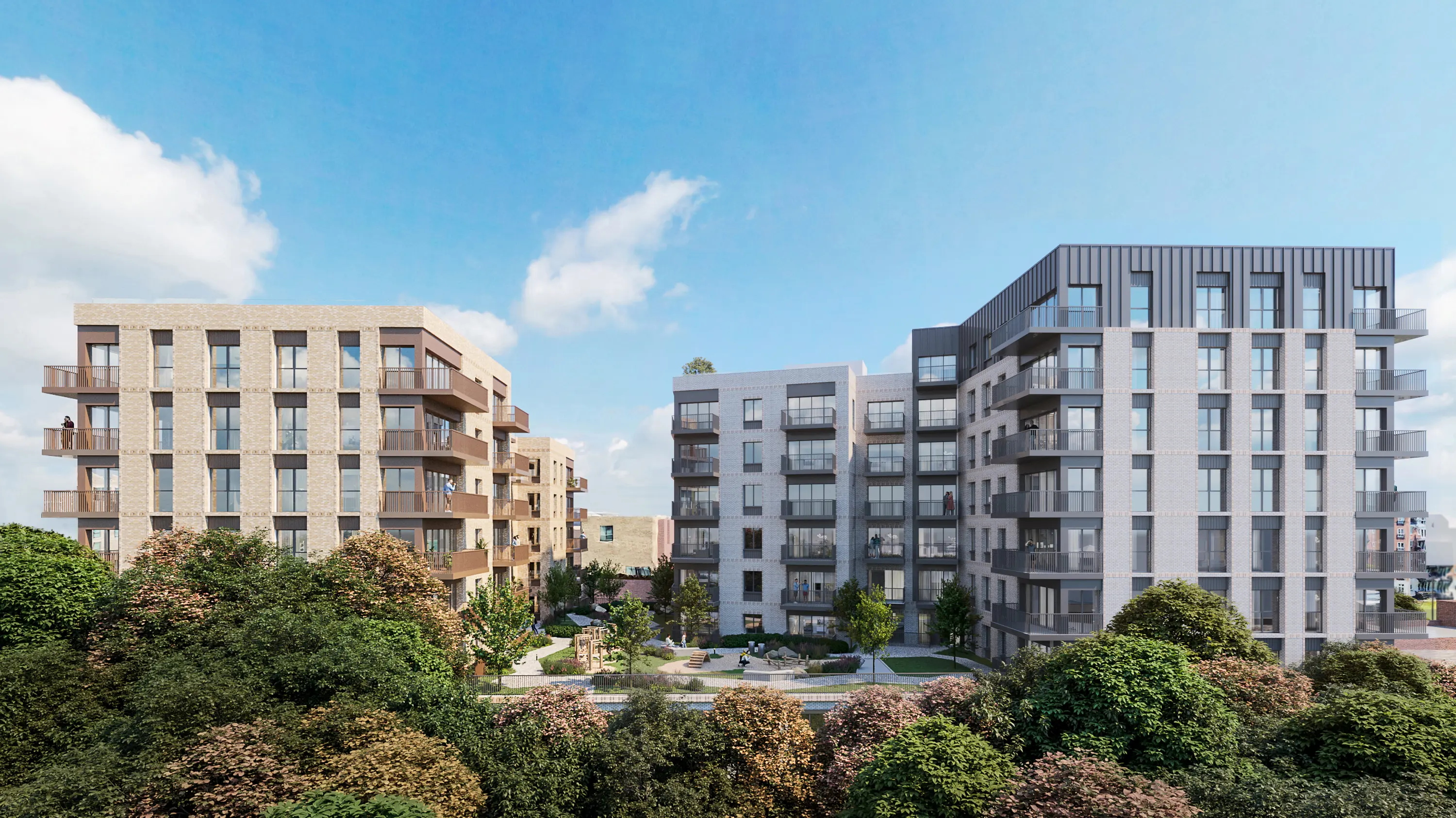 The proposed public realm presents an opportunity to regenerate the brownfield site and create publicly accessible outdoor spaces, including secured landscape cycle storage and children play space created from sustainably sourced materials.
