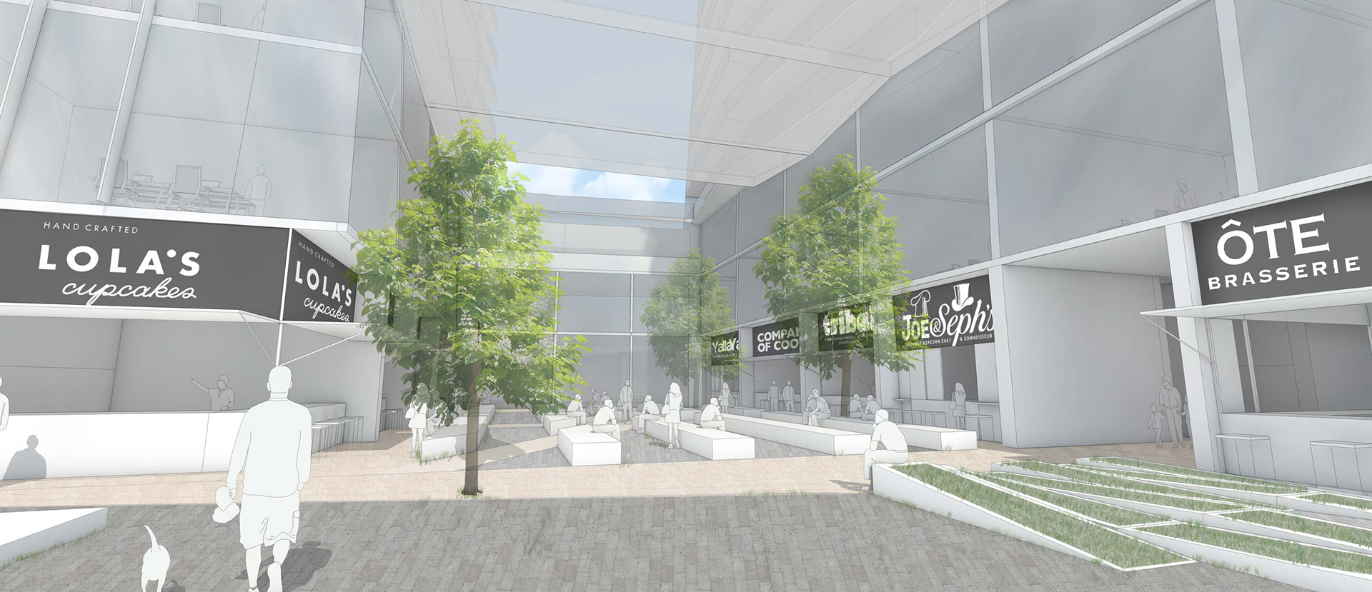 We have sculpted the towers to reduce their perceived mass, achieving a slimming visual effect at the higher storeys and allowing a view to the sky from all angles. The angled facades work to deliver maximum daylight into the central courtyard and apartments; at street level our new food offer is a unique concept where the point of production is co-located with the point of consumption.