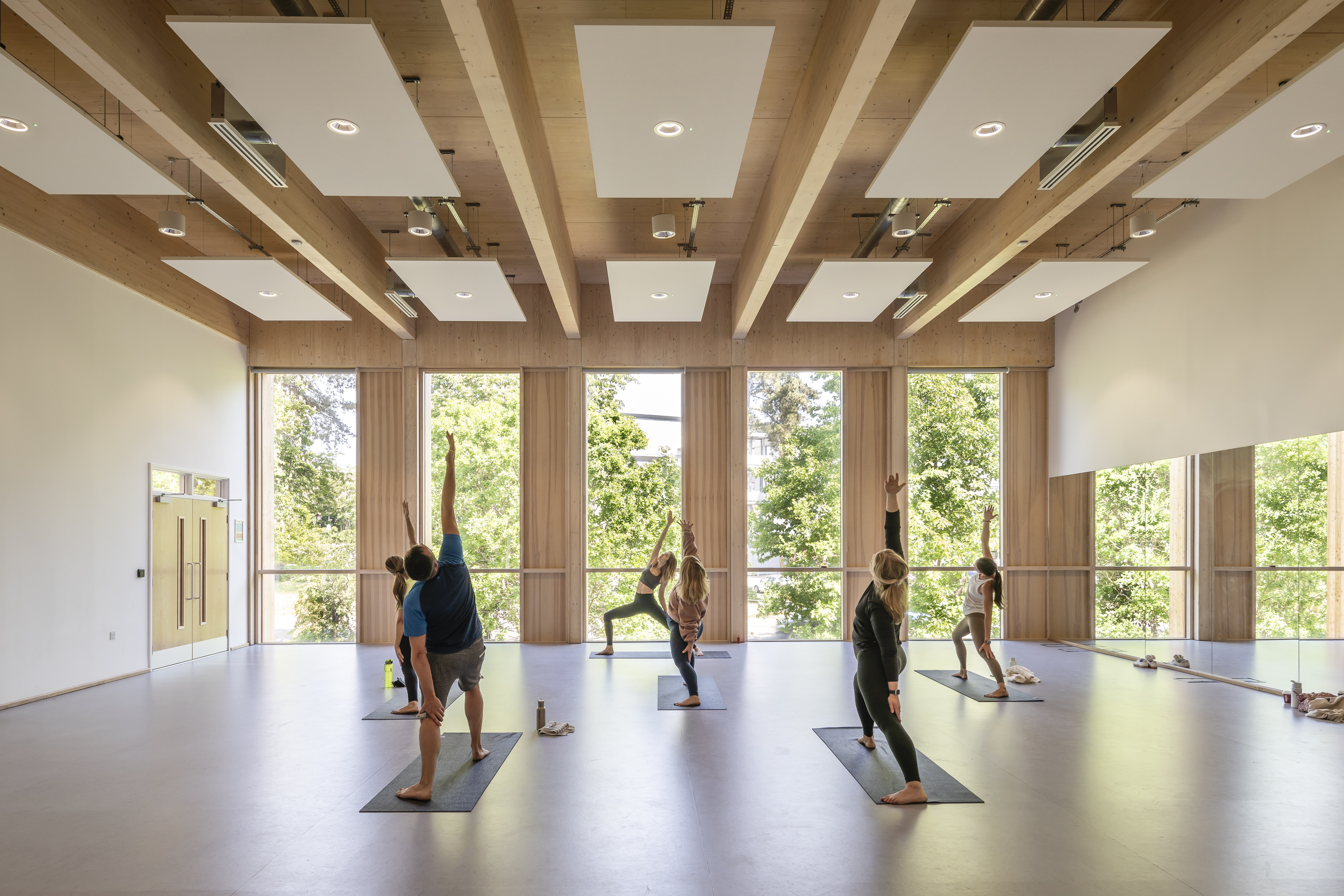 Our approach embraces the biophilia hypothesis that humans are innately attracted to and seek connections with the natural world, natural materials, textures, patterns and colours. Landscape views are provided from key spaces, natural ventilation and daylighting are optimised and the building’s cross laminated timber structure which is key to the carbon strategy for the project is revealed internally and externally.