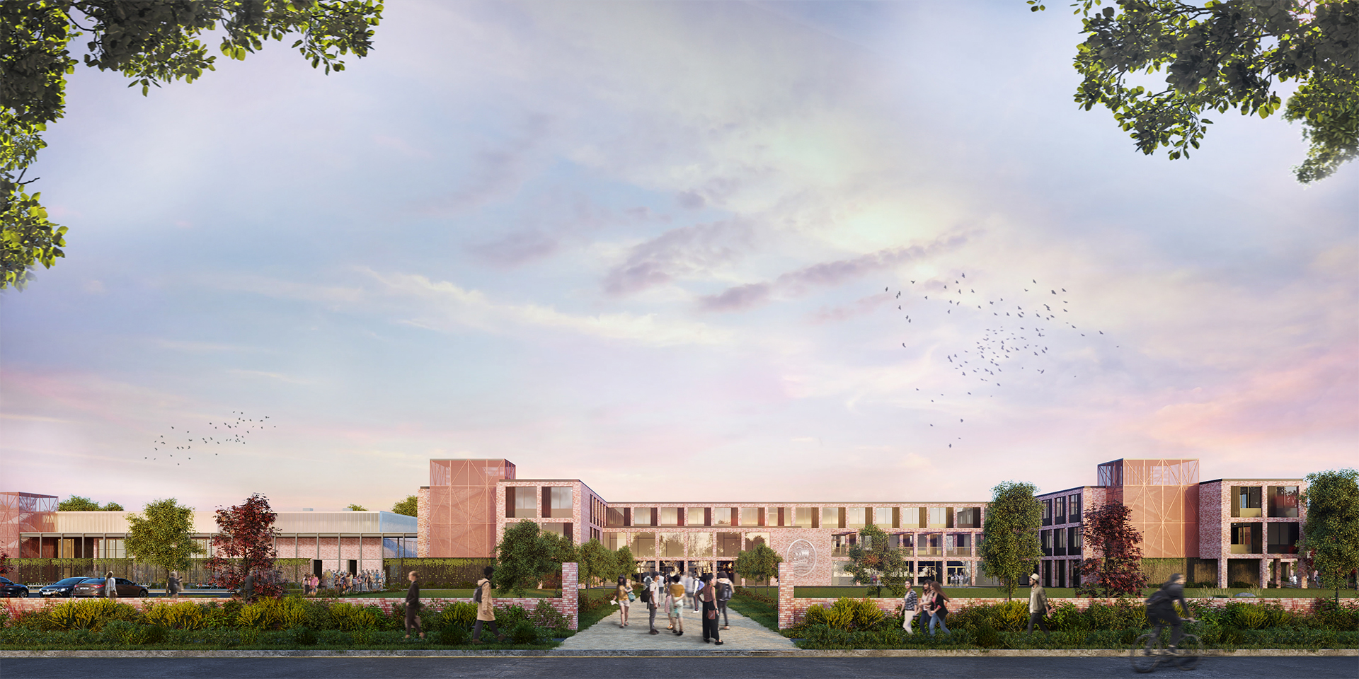 The design concept proposes an ‘education village’ grouped around a central promenade to create a series of buildings permeated by green landscape. The promenade sits at the core of the buildings, and will be the metaphorical and physical heart of the school. It is a space for learning, teaching, social interaction and enjoyment; allowing direct access to a series of external courtyards, each with a distinctive character and use.