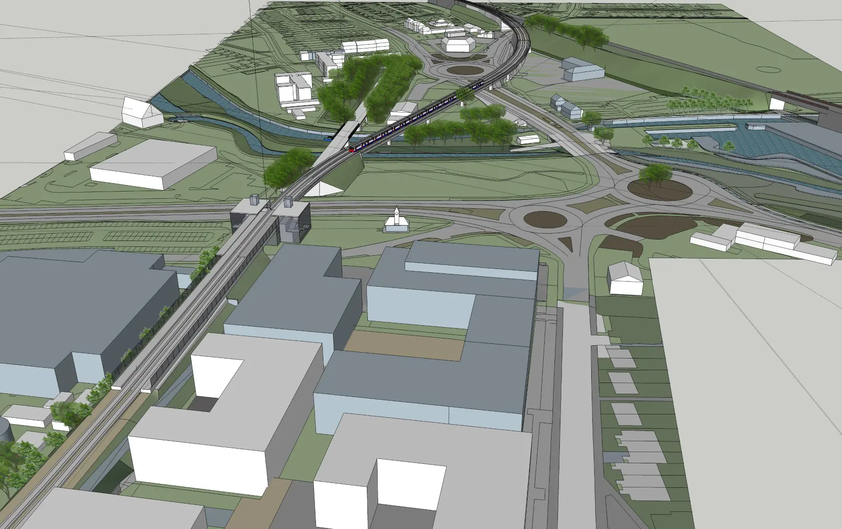 We created initial designs to achieve Department for Transport funding, with significant stakeholder involvement and public consultations. The Rail Link was awarded the necessary central government funding required for its construction. Work on the extension stopped in 2016 due to anticipated cost overruns and an unresolved dispute over funding.