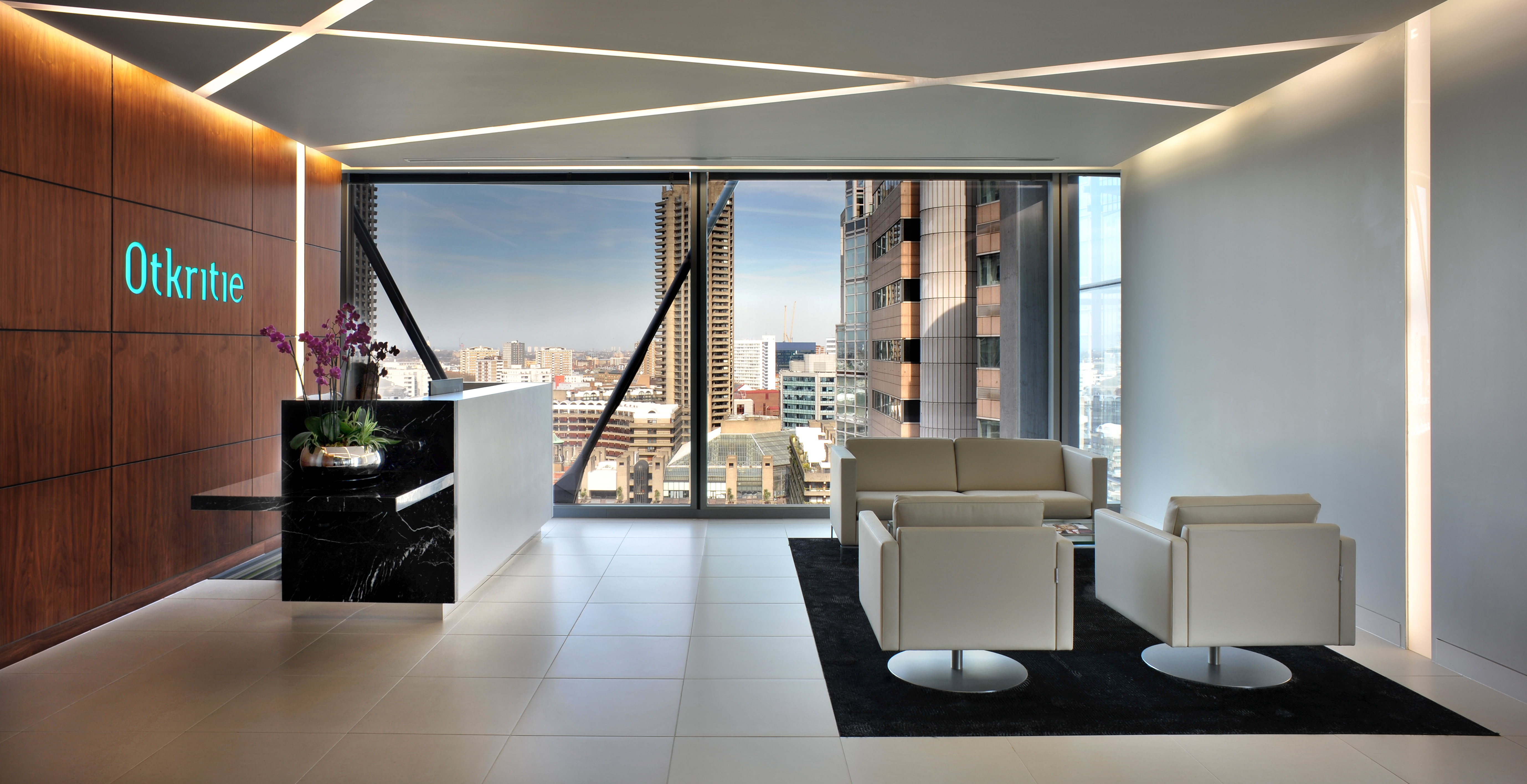 The stunning views over the City helped determine our design. The reception and 12 person boardroom is located adjacent to the lift lobby and provides impressive views over the Barbican. Not to detract from this view, our minimal design for the reception uses clean, strong lines and muted colours. An outside terrace on the trading floor increases break-out and entertainment space and provides an illuminated dining and lounge area in the evenings.