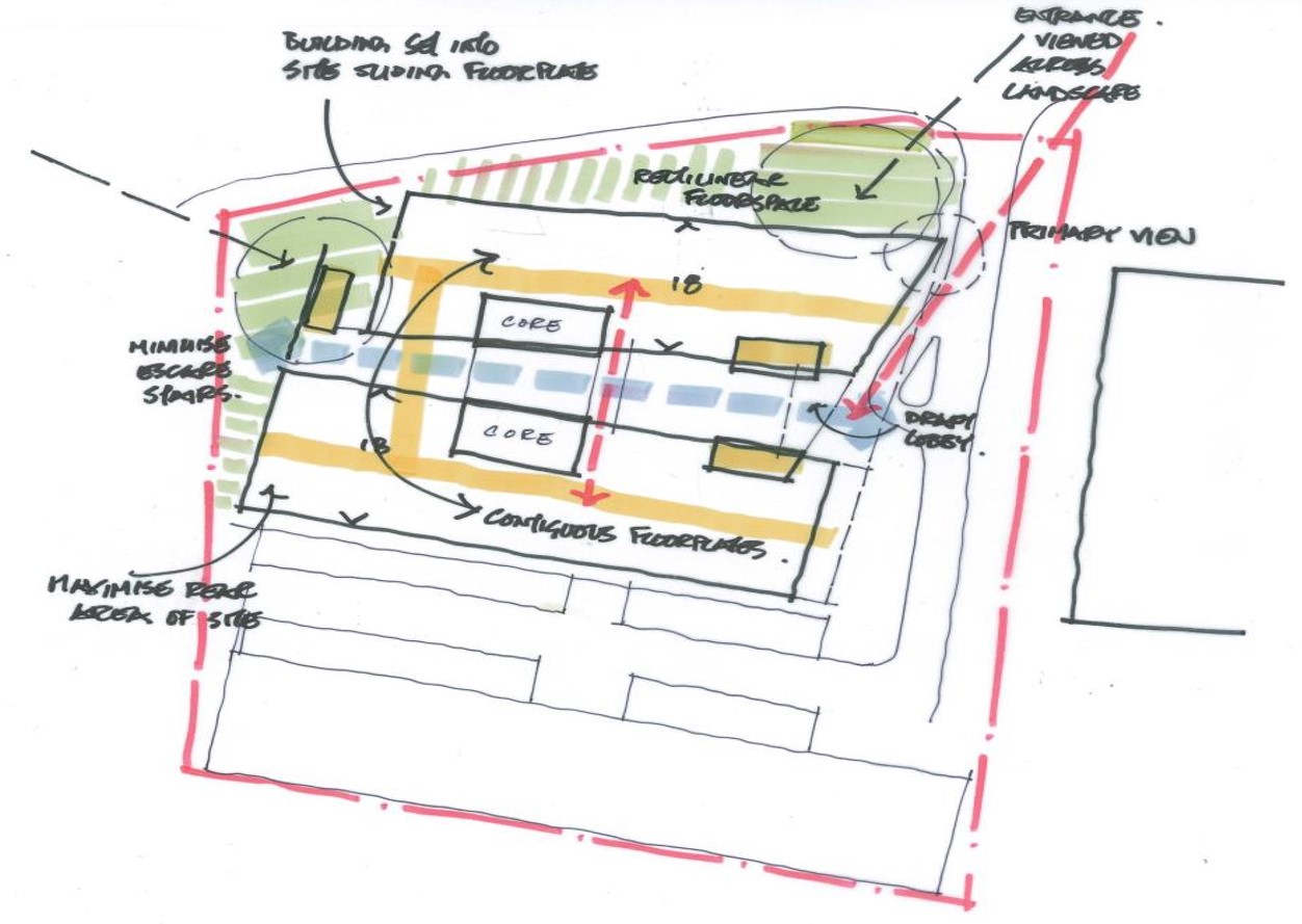 Our design needed to be architecturally exciting yet attractive to a contractor, in what was a heated market. By using flexible, simply divisible floorplates that surround a large central atrium with interlinking bridges, we could future-proof the building for multi-tenants whilst also animating the atrium space and providing opportunities for chance interactions. The headquarters building not only recognises the desire to provide a strong formalistic approach to its setting, but also provides a highly efficient, flexible building that incorporates state-of-the art facilities for this leading technology research company.