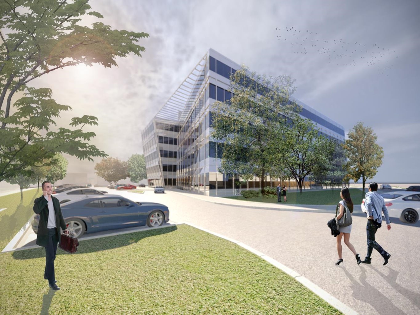 By sloping the façade and using angled brise-soleil, we were able to mark the entrance, maximise the floor space and provide a suitable feature to the headquarters building. We raised the building above the ground to allow flood waters onto the site without interrupting its use.