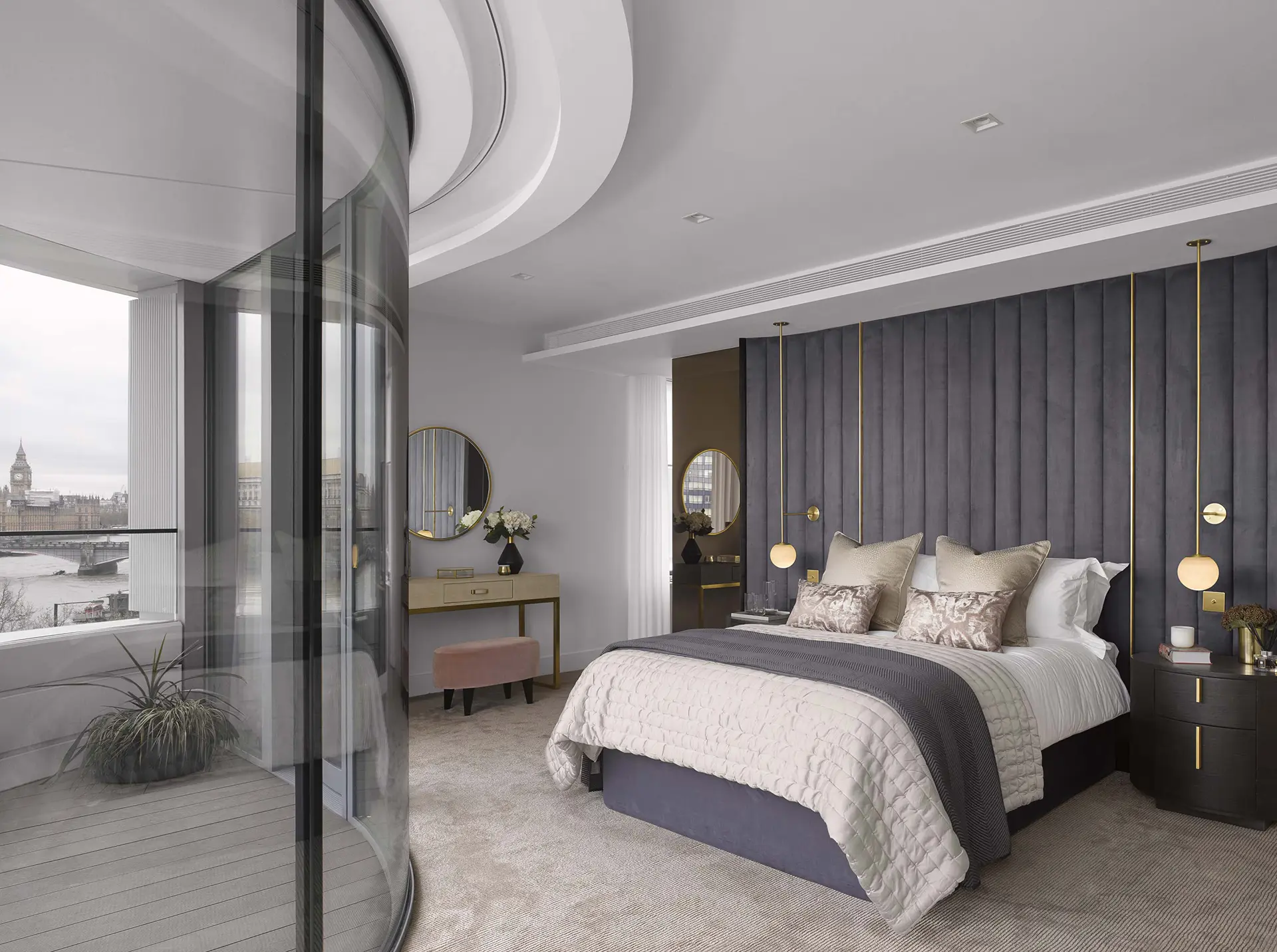 Bespoke joinery and the headboards capture art deco forms but have been re-imagined in a contemporary way.